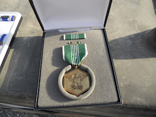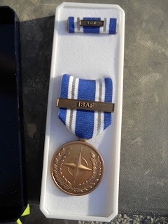 6 months, 15,000 miles. I went from 4 ribbons to 9 (added an ARCOM (Army Commendation) and NATO Medal, as well as an Afghan Campaign Medal, Overseas Service Ribbon, and an Army Reserve Medal). Plus I am officially no longer a "slick sleeve" (term for anyone without a SSI-FWTS (Shoulder Sleeve Insignia, Former War Time Service) on your right shoulder).